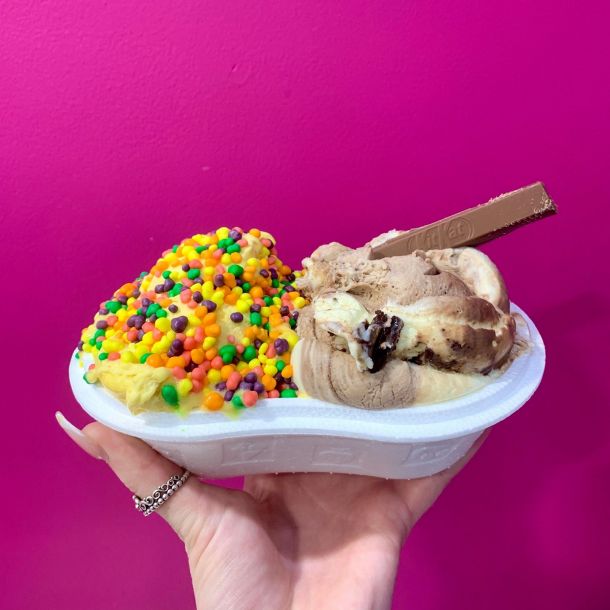 Self-serve Frozen Yogurt, Sorbet, Acai and Gelato, with Vegan, Nut-Free, and Gluten-Free options available.
